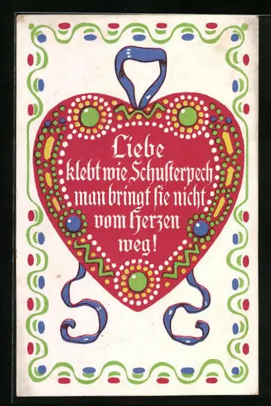 Künstler-AK Liebe klebt wie Schusterpech, man bringt sie nicht vom Herzen weg!