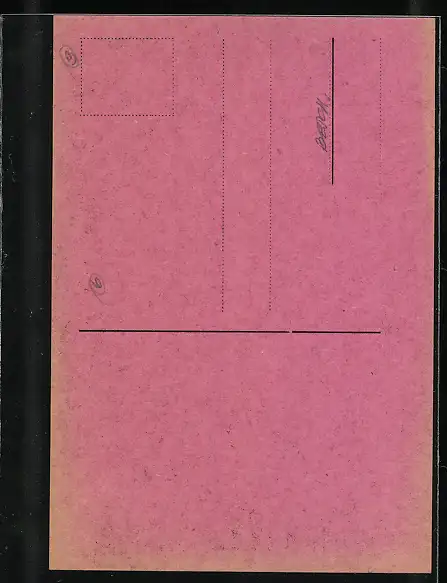 Personenbezogene Daten auf der Rückseite der Karte wurden durch blauen Textmarker unkenntlich gemacht. Die blauen Stellen sind auf die Vorderseite durchgeweicht und wirken sich negativ auf das Postkartenfoto aus