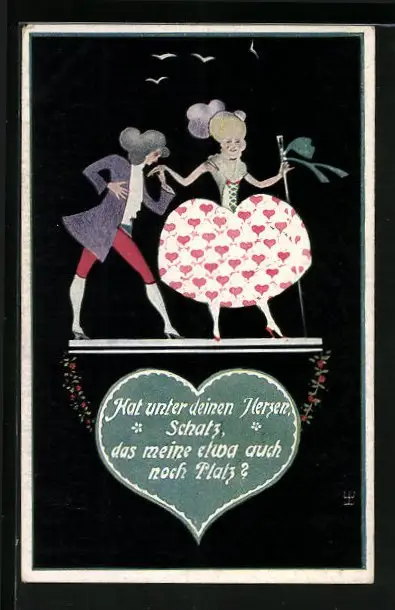 Künstler-AK Liebespaar mit Herz und Liebesspruch
