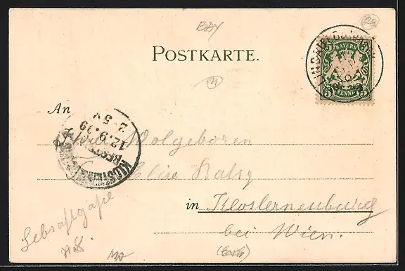 alte Ansichtskarte, gelaufen 1899, guter Zustand