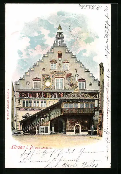 Künstler-AK Lindau i. B., Das Rathaus in der Frontalansicht