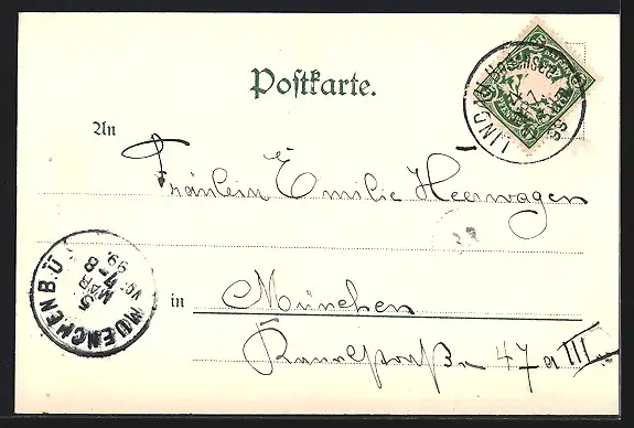 alte Ansichtskarte, gelaufen 1899, Stempelspur, guter Zustand