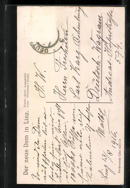 gelaufen 1916, Briefmarke entfernt, guter Zustand