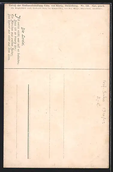 Künstler-AK Loreley mit Lyra auf dem Felsen