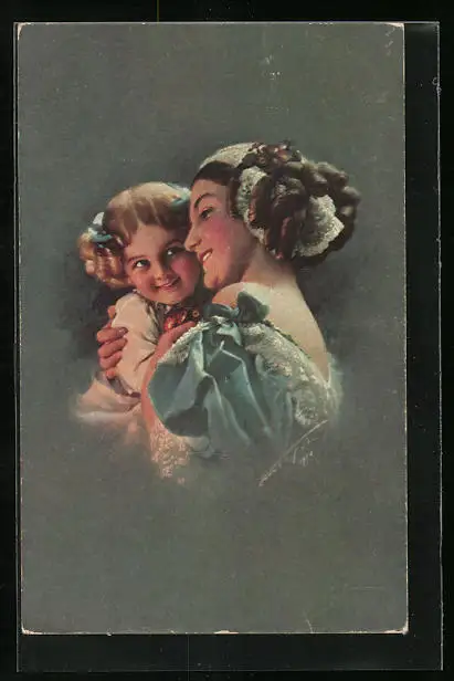 Künstler-AK Ludwig Knoefel: Glückliche Mutter mit Tochter
