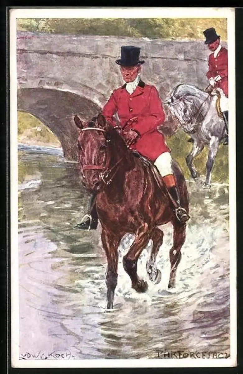 Künstler-AK Ludwig Koch: Parforce-Jagd