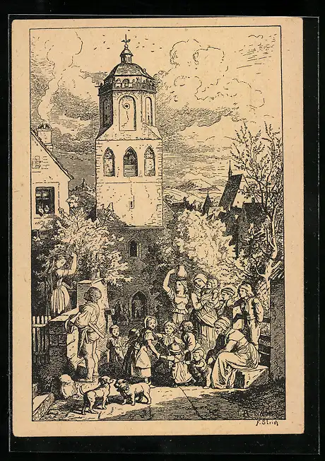 Künstler-AK Ludwig Richter: Feierabend