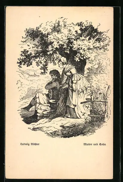 Künstler-AK Ludwig Richter: Mutter und Sohn