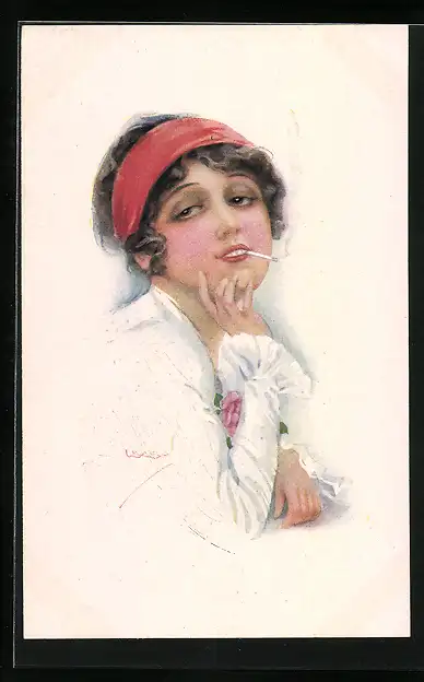 Künstler-AK Luis Usabal: Hübsche junge Dame raucht eine Zigarette