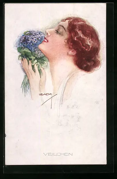 Künstler-AK Luis Usabal: Junge Frau geniesst Veilchenduft