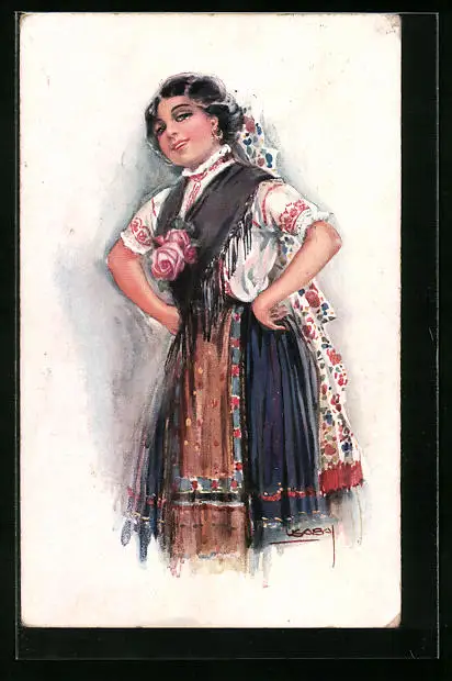 Künstler-AK Luis Usabal: Junge Frau in Tracht