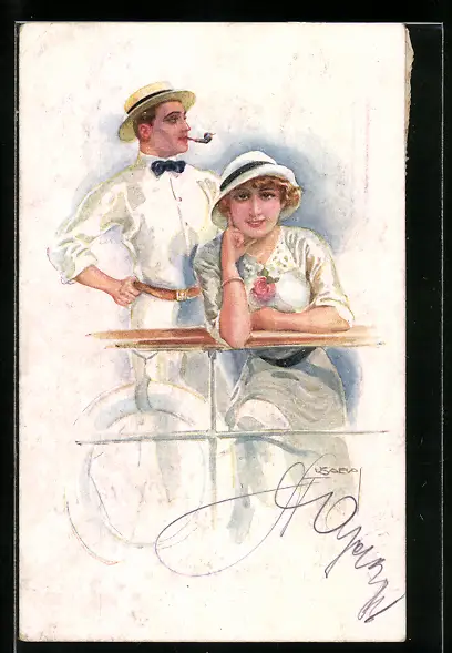 Künstler-AK Luis Usabal: Paar bei Schifffahrt