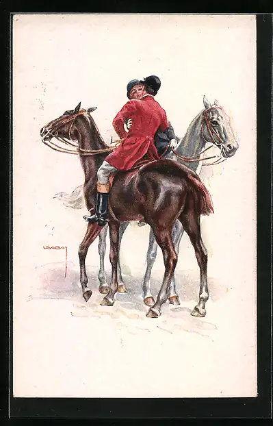 Künstler-AK Luis Usabal: Paar bei der Begrüssung zu Pferde