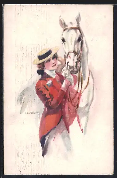 Künstler-AK Luis Usabal: Reiterin mit ihrem Pferd