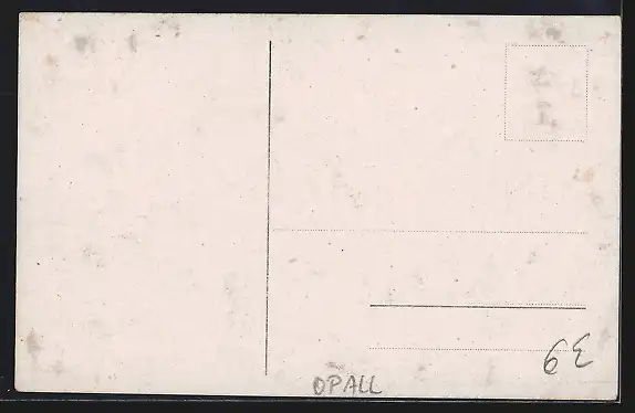 Personenbezogene Daten auf der Rückseite der Karte wurden durch blauen Textmarker unkenntlich gemacht. Die blauen Stellen sind auf die Vorderseite durchgeweicht und wirken sich negativ auf das Postkartenfoto aus