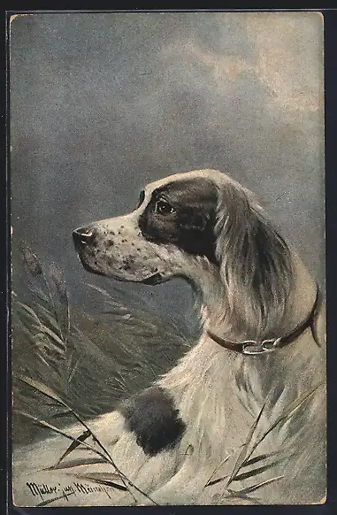 Künstler-AK M. Müller jun.: Profil eines Hundes