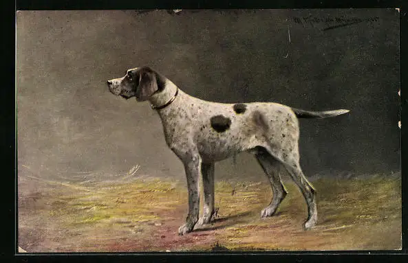 Künstler-AK M. Müller jun.: Schwarz-weisser Jagdhund