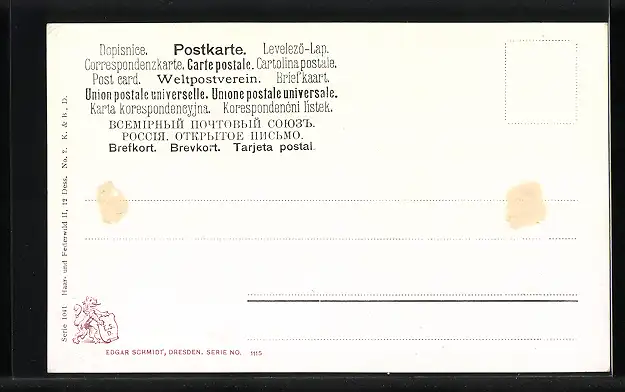 alte Ansichtskarte, ungelaufen, rückseitig Klebe- und Papierreste, guter Zustand