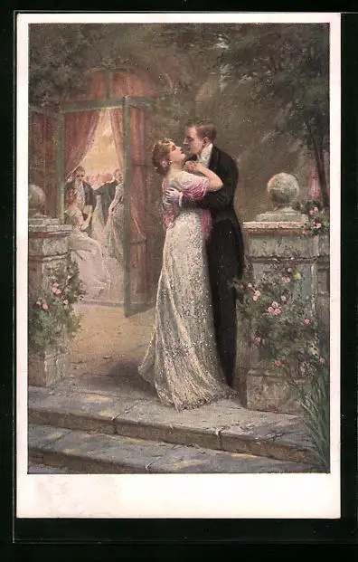 Künstler-AK M. Munk Nr. 1319: Romantische Umarmung am Rande eines Festes
