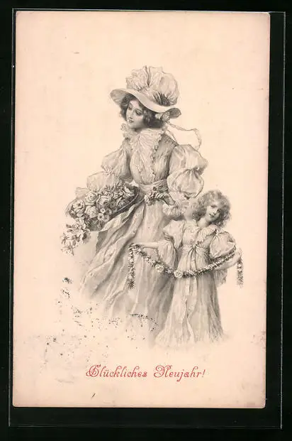 Künstler-AK M. Munk Nr. 237: Mutter und Tochter mit Blumen