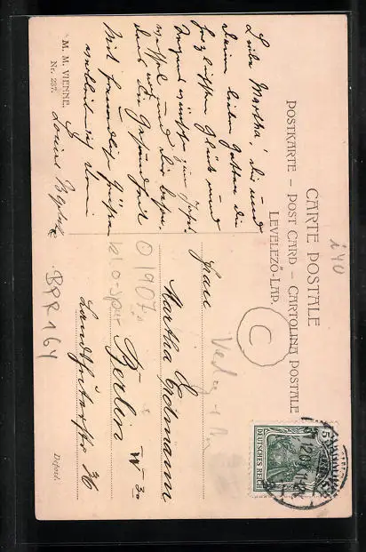 alte Ansichtskarte, gelaufen 1907, Stempelspur, sonst guter Zustand