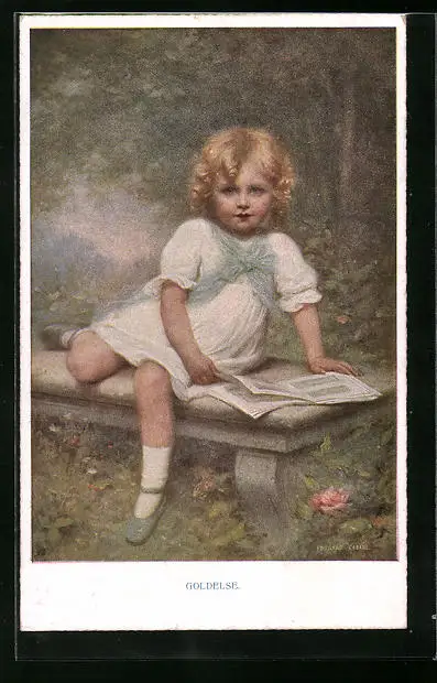 Künstler-AK M. Munk Nr. 880: Goldelse, blondes Mädchen sitzt auf einer Bank