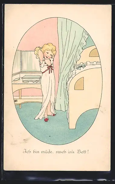 Künstler-AK M. Munk Nr. 905: Ich bin müde, rasch in's Bett!