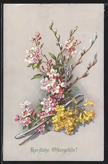 Künstler-AK M. Munk Nr. 961: schönes Blumengebinde mit kleinem Schwert