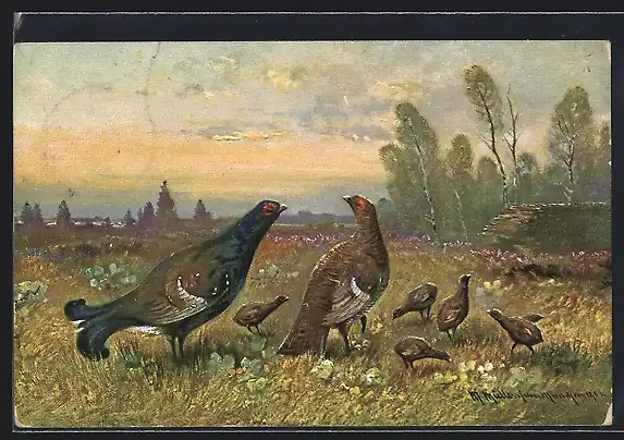 Künstler-AK M.Müller jun.: Auerhahn auf dem Feld
