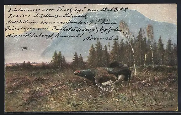 Künstler-AK M.Müller jun.: Landschaftspanorama mit Wildvogel, Um 1900