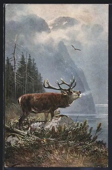 Künstler-AK M.Müller jun.: Röhrender Hirsch