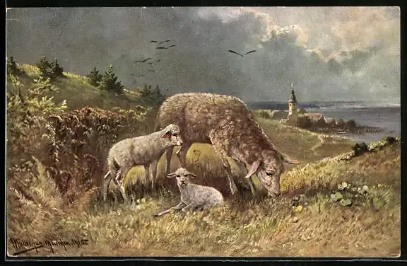 Künstler-AK M.Müller jun.: Schafsfamilie