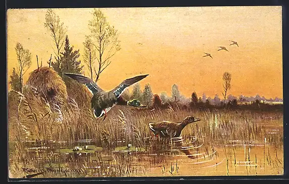 Künstler-AK M.Müller jun.: sommerliche Entenjagd