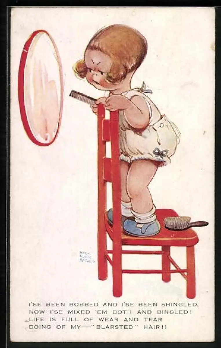 Künstler-AK Mabel Lucie Attwell: Kleines Mädchen kämmt sich