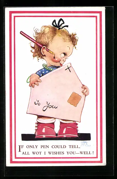 Künstler-AK Mabel Lucie Attwell: Kleines Mädchen mit Briefumschlag