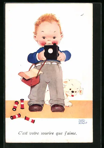 Künstler-AK Mabel Lucie Attwell: Knabe mit Fotoapparat