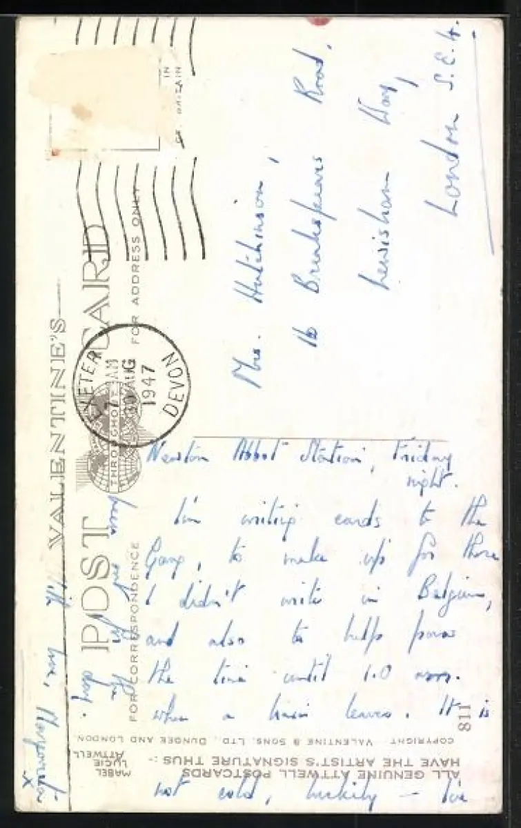 alte Ansichtskarte, gelaufen 1947, Briefmarke entfernt, rückseitig Oberflächenschaden, Stempelspur, guter Zustand