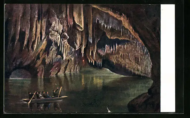 Künstler-AK Macocha Höhle, Der unterirdische See