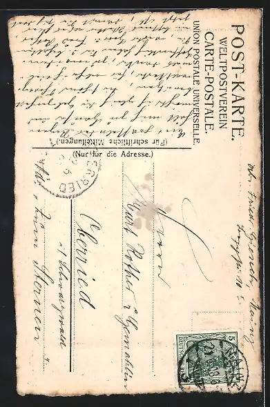 alte Ansichtskarte, gelaufen 1908, guter Zustand
