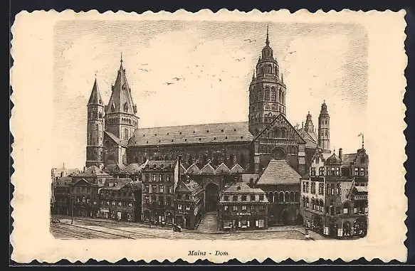 Künstler-AK Mainz, Dom mit Strassenpartie