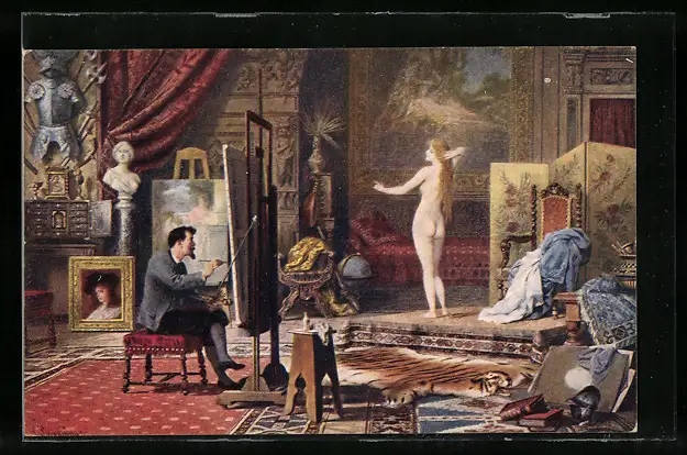 Künstler-AK Maler zeichnet ein nacktes Modell