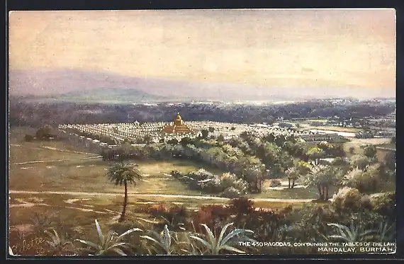 Künstler-AK Mandalay, The 450 Pagodas containing the Tables of the Law