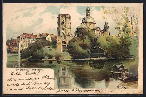 Künstler-AK Mannheim, Idylle im Stadtpark