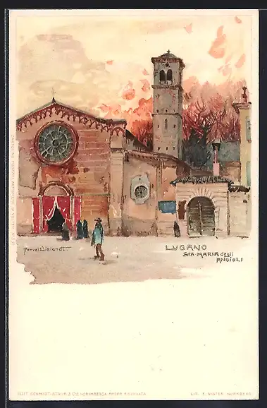Künstler-AK Manuel Wielandt: Lugano, Santa Maria degli Angioli