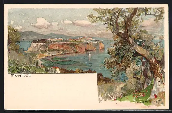 Künstler-AK Manuel Wielandt: Monaco, Küstenpartie