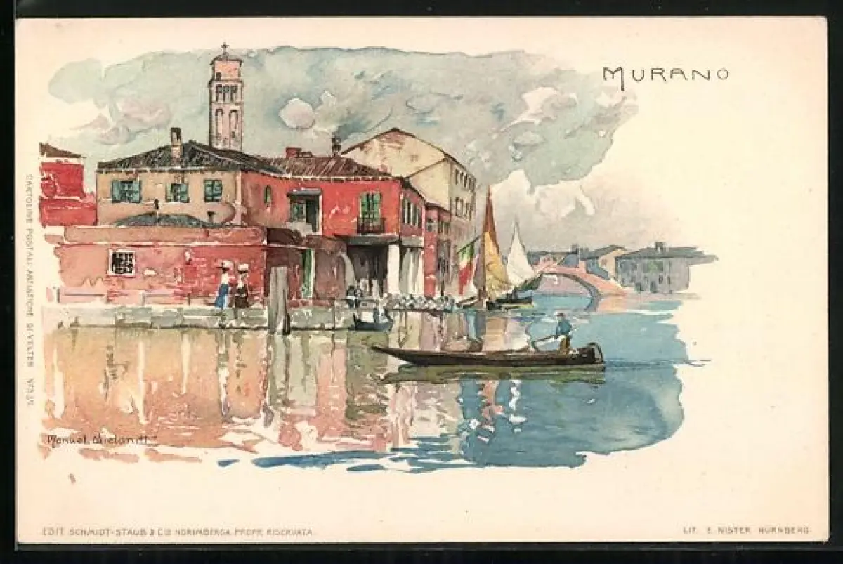 Künstler-AK Manuel Wielandt: Murano, Fischerboot fährt ein