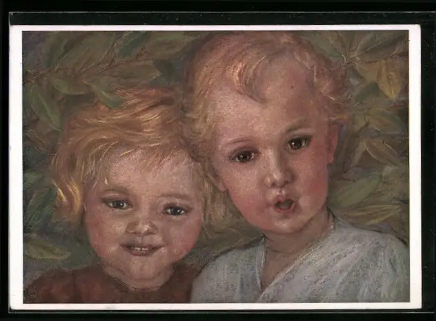 Künstler-AK Maria Spötl: Blonde Kinder mit neugierigem Blick