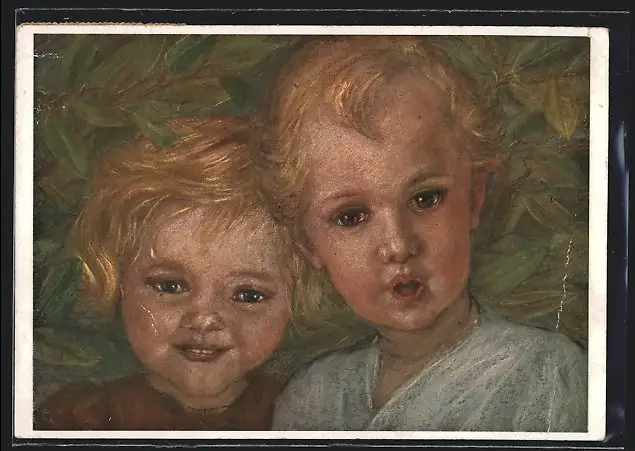Künstler-AK Maria Spötl: Blonde Kinder mit neugierigem Blick