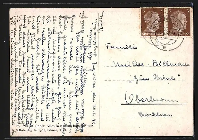 alte Ansichtskarte, gelaufen 1942, Bugspur re. unten, Eckknick re. oben, guter Zustand