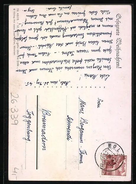 alte Ansichtskarte, gelaufen 1945, Einriss unten li., guter Zustand